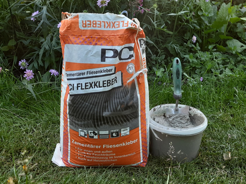 Beim späteren Befüllen mit dem Steilwandsubstrat sollte unbedingt beachtet werden, dass der Fliesenkleber mehrere Tage zum vollständigen Durchhärten benötigt. Wird er vorher belastet, kann der Kleber brechen und sich die Fliese lösen.